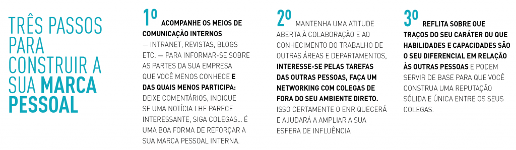 Palavras como networking, identidade e medição de impacto são utilizadas, na maioria dos casos, com uma conotação voltada para o exterior. No entanto, o que acontece nas empresas cada vez mais transversais, com formas de liderança por influência e onde prevalece o trabalho colaborativo? Nessas empresas, a marca pessoal interna começa a ser muito relevante e, portanto, vale a pena separar um tempo para refletir sobre como construir para nós mesmos uma boa reputação diante dos nossos colegas, chefes e colaboradores.
